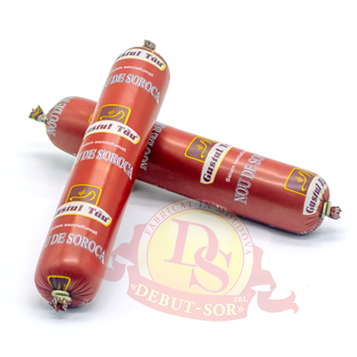 Ingrediente: carne de vită, carne de porc, carne de pasăre, sare, zahăr, usturoi;